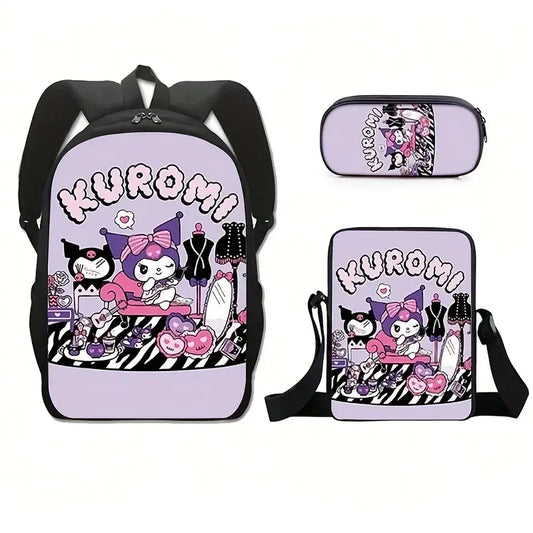 Set Mochila + Estuche + Bolsito Almuerzo Kuromi