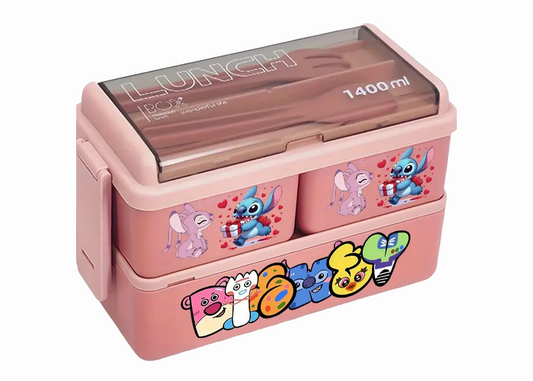 Fiambrera Stitch 2 pisos con cuchara y tenedor