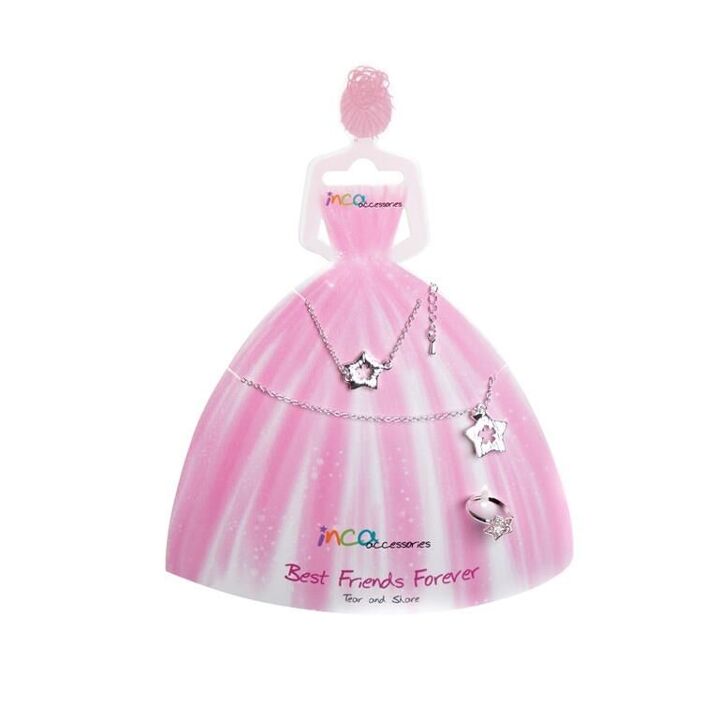 Set de collar, pulsera y anillo plateados con estrellita (43,5/17cm) (3 u./ Blister)