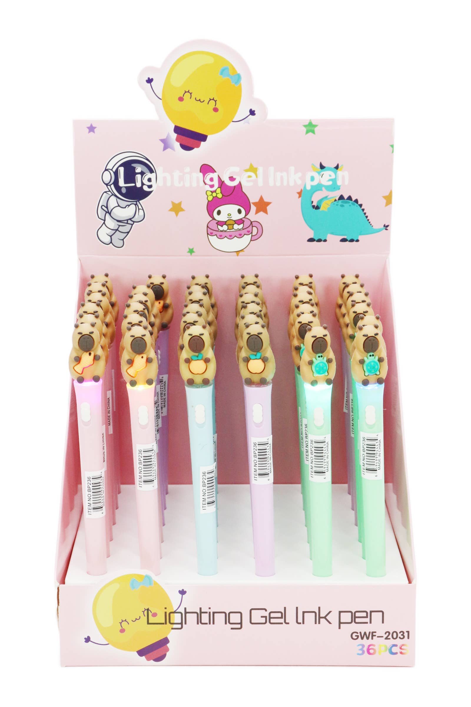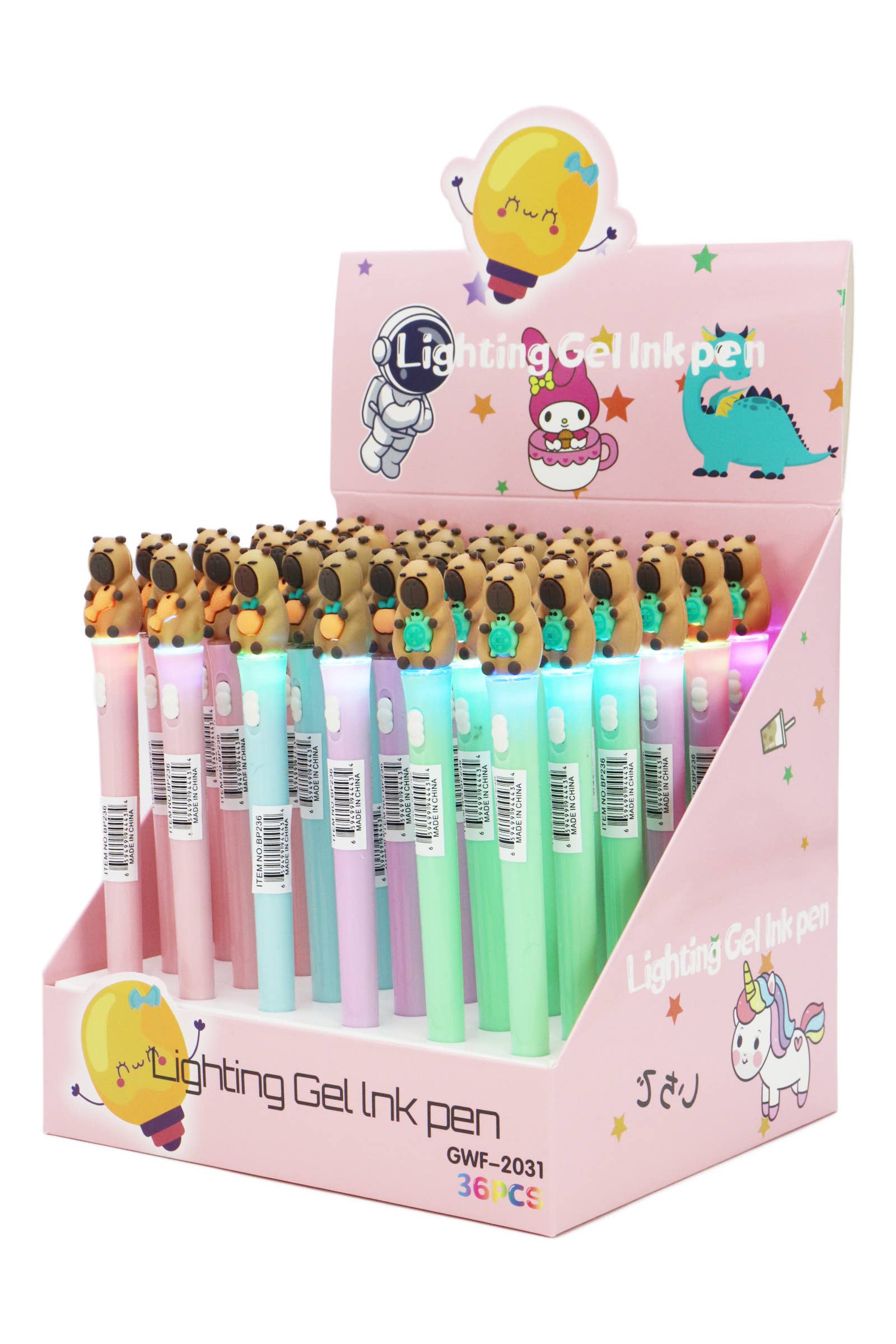 Colección de bolígrafos con luz LED de figuras de capibara - 36 uds