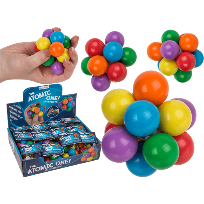 Juguete antiestrés, Atomic, aproximadamente 6,5 x 6,5 cm, en 2 colores, en red con tarjeta de cabecera, 12 unidades por pantalla Stress Relief