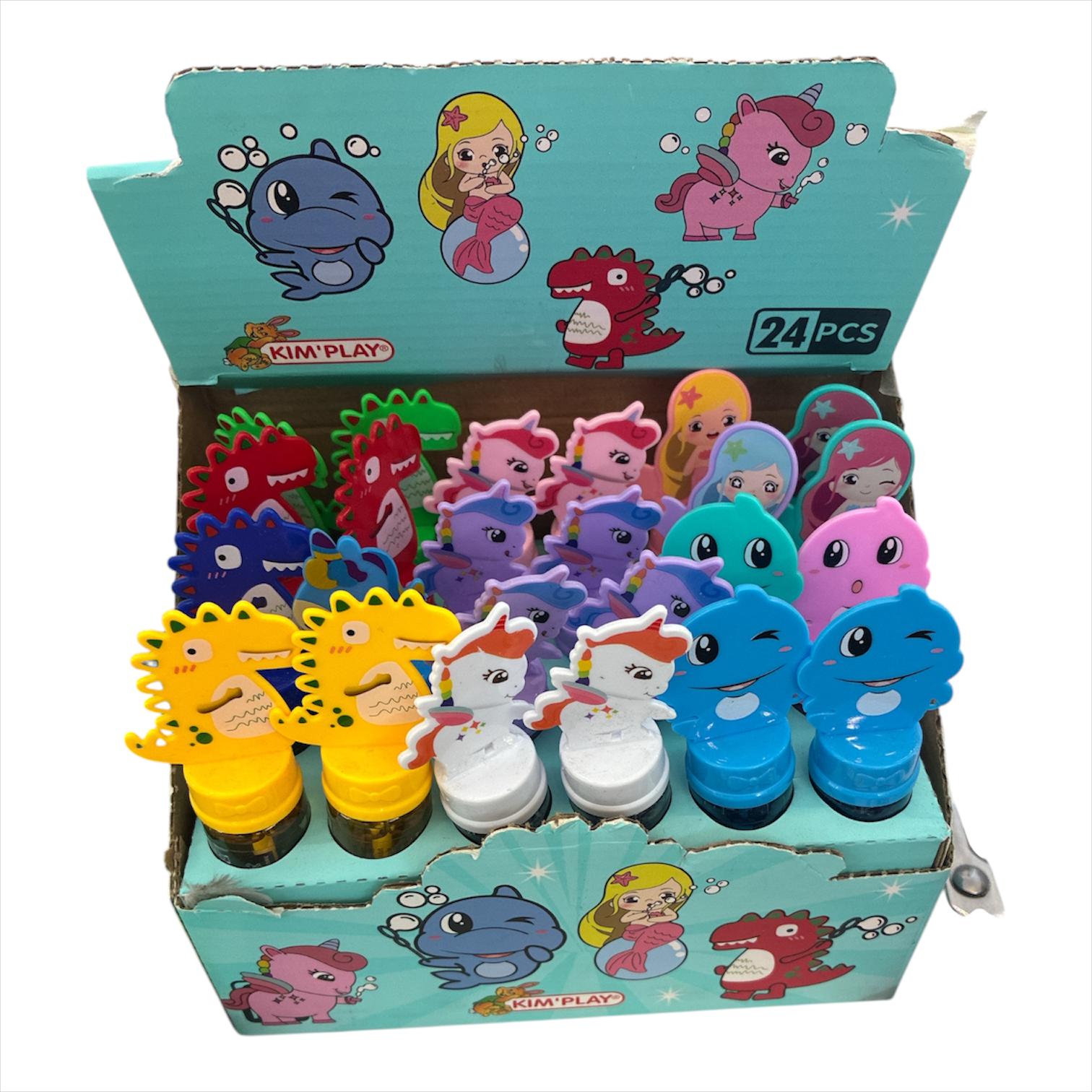 ¡Elige tu personaje favorito! 🐉🦄 Cada unidad incluye una botella de burbujas con tapa decorativa en forma de adorables criaturas: dragones, unicornios o personajes marinos. 🌈 Disponible en colores pastel (amarillo, azul, rosa y lila) que encantan a los niños. 🫧 Perfecto para regalos individuales, piñatas o completar tu colección. ¡Diversión burbujeante al alcance de todos! 💫